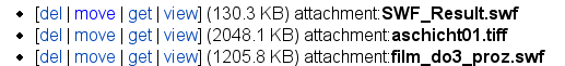 <<AttachList(,mimetype)>> lists attachments of the current page that are of the given mimetype.